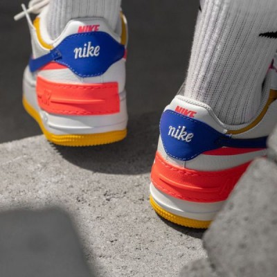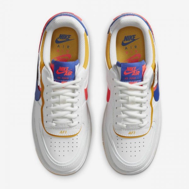 Air Force 1 Shadow White Flash Crimson Astronomy Blue – cái tên đã phơi bày toàn bộ sự rực rỡ của đôi giày tới từ nhà Nike. Outsole vàng tương phản với upper trắng, họa tiết và biểu tượng Swoosh xanh-đỏ đối lập hai bên, tất cả tạo nên một tổng thể bắt mắt và tràn đầy năng lượng. Kết hợp cùng form dáng vừa vặn, thiết kế low-top mềm mại và công nghệ đế Air êm ái, đây chắc chắn là đôi giày phải có trong tủ đồ của những cô nàng năng động, cá tính.
