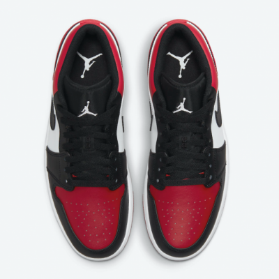 Nike Air Jordan 1 Low Bred Toe sử dụng phối màu đen-trắng-đỏ quen thuộc cùng chất liệu da trơn cao cấp, mềm mại cho phần upper. Điểm nhấn của đôi giày nằm ở phần toe box đỏ-đen đúng như cái tên ‘Bred Toe’. Form giày hơi “bầu bĩnh” mang dáng dấp những đôi Air Jordan cổ điển, phần midsole được cải tiến từ công nghệ Air nguyên bản giúp tăng thêm sự êm ái khi vận động.